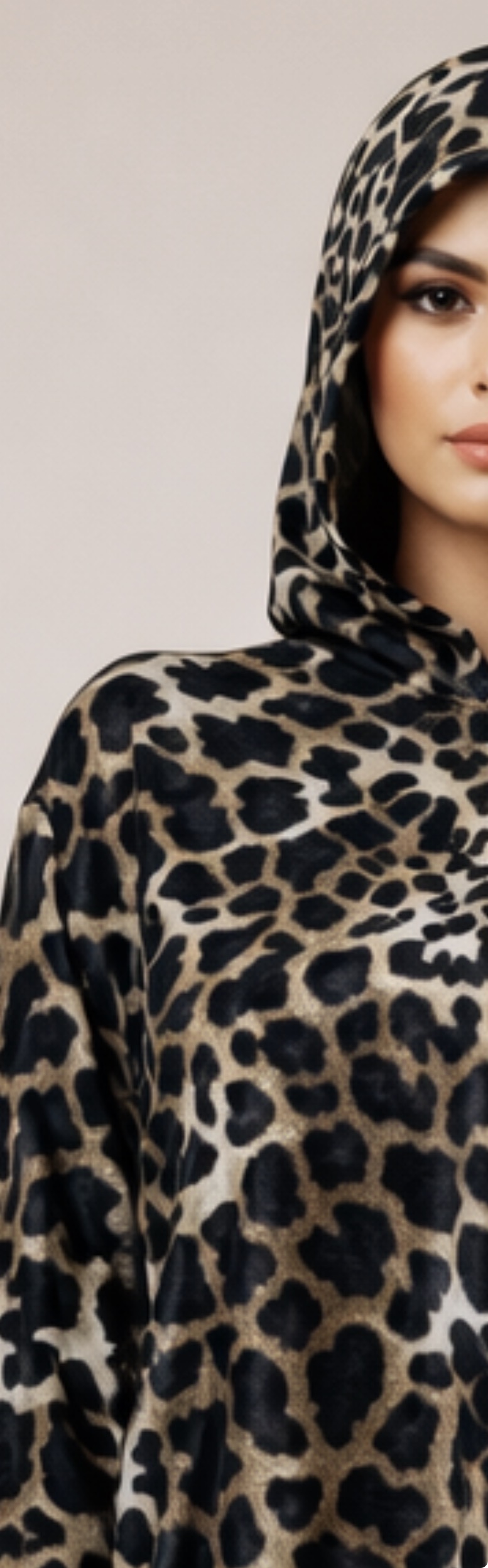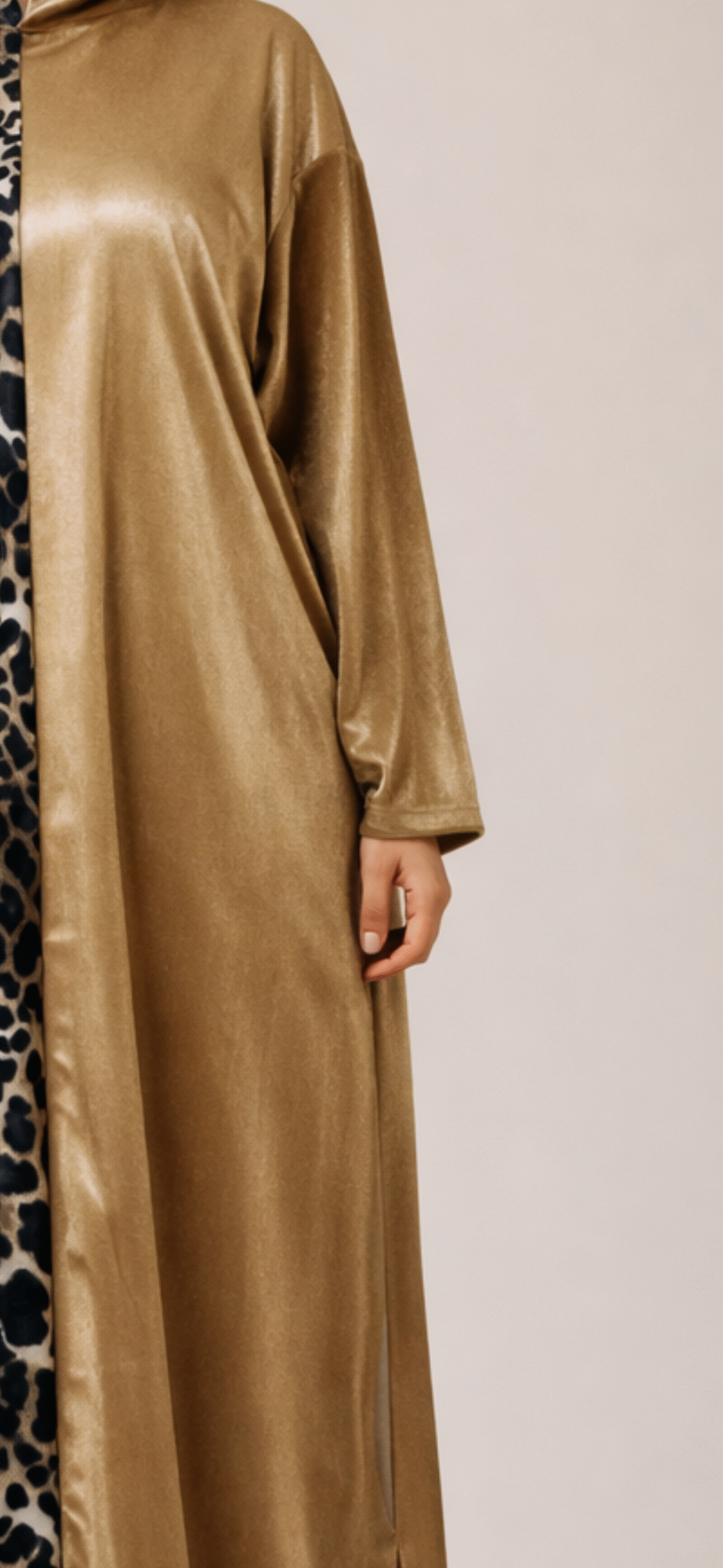 إسدال رمضاني حريمي قطيفة هودي ليوبارد لون ذهبي