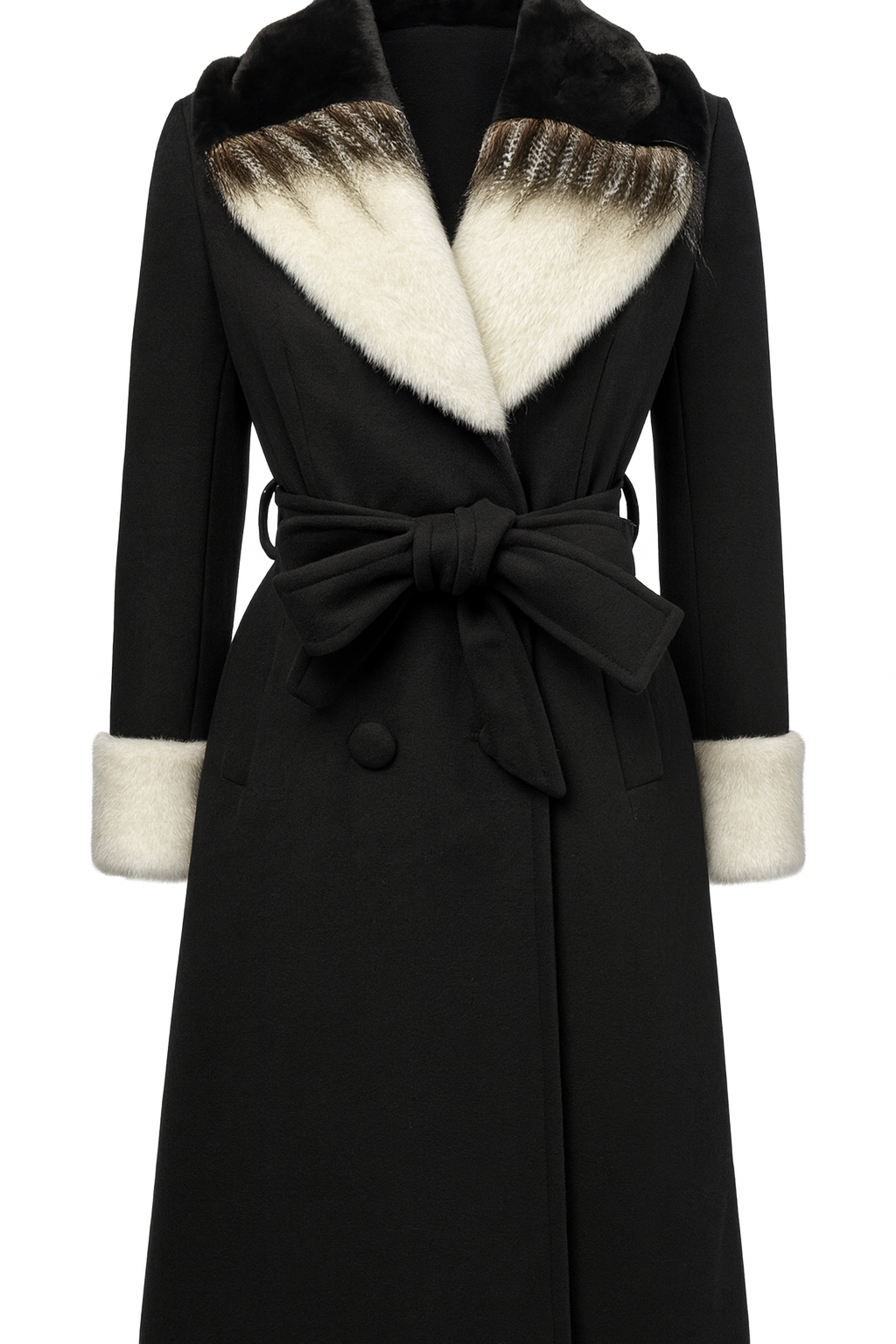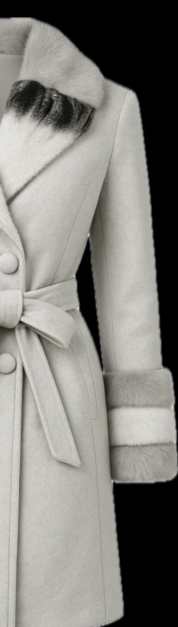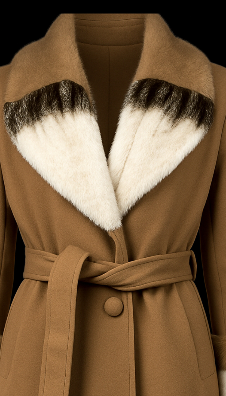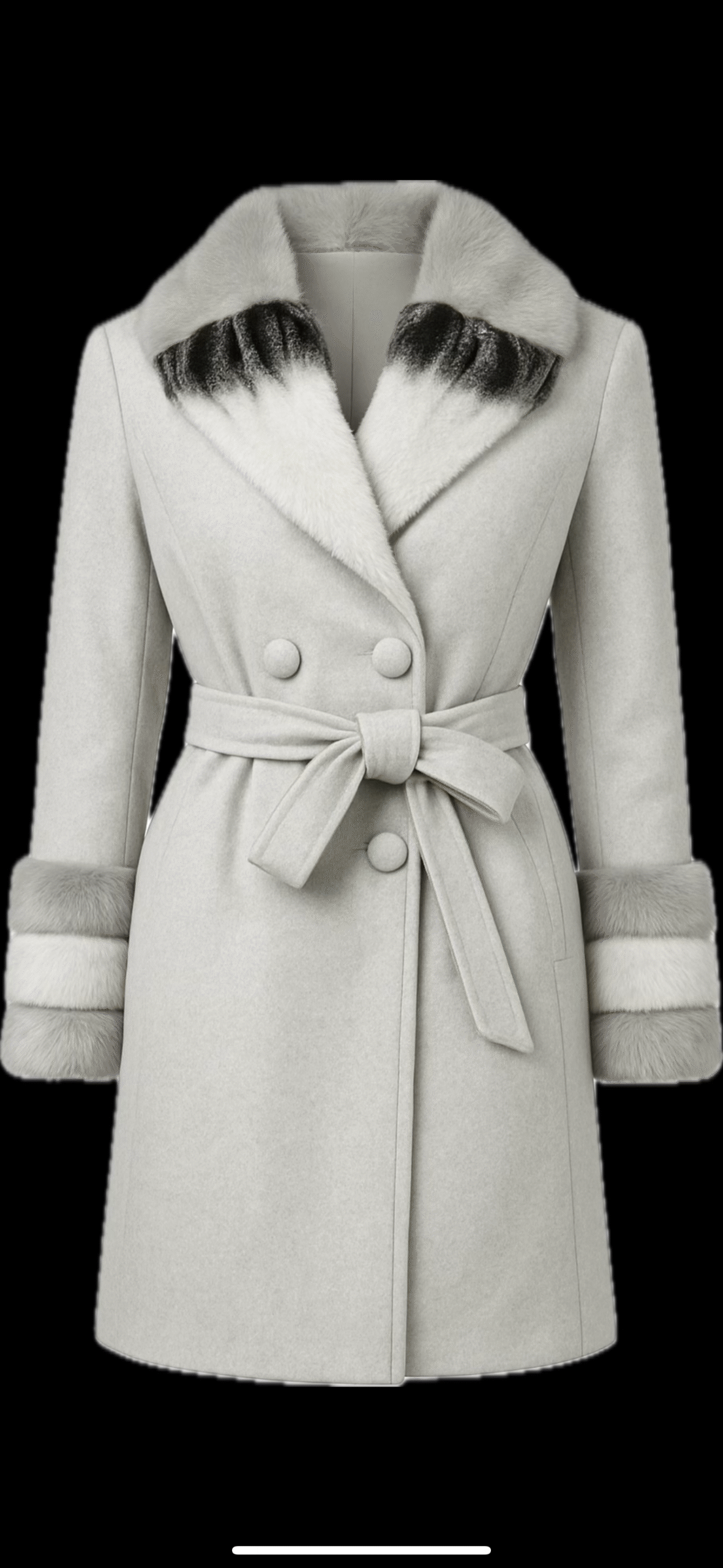 بالطو شتوي فخم بخامه صوف وياقه فرو مزدوجه