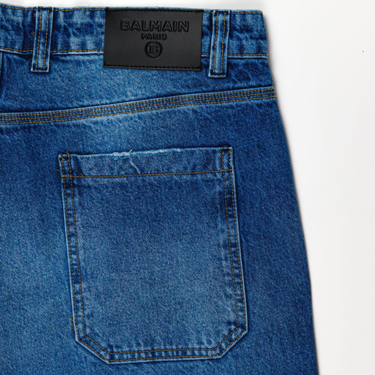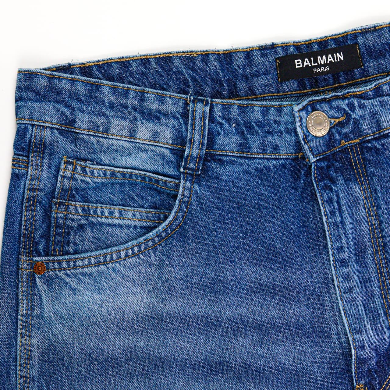 بنطلون Balmain جينز أزرق بتصميم Wide Leg، مستورد بالكامل بخامة أصلية عالية الجودة.