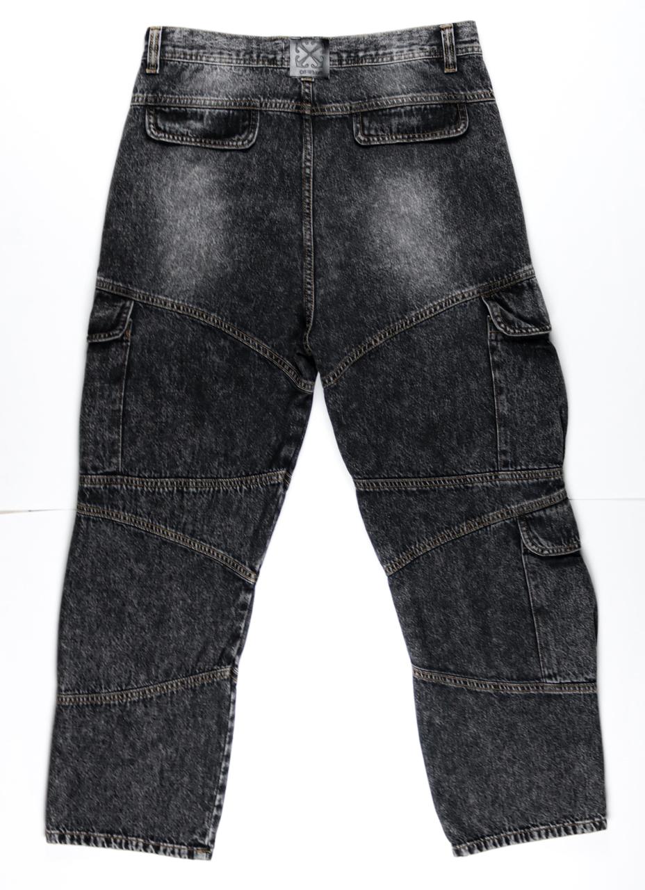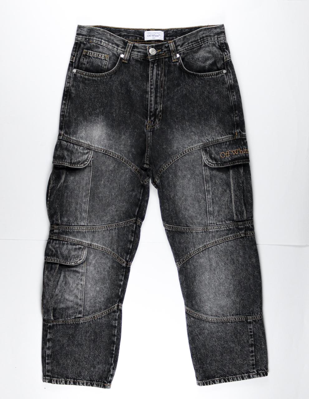 بنطلون Off-White Cargo جينز غسيل أسود بتصميم مريح وأنيق.
