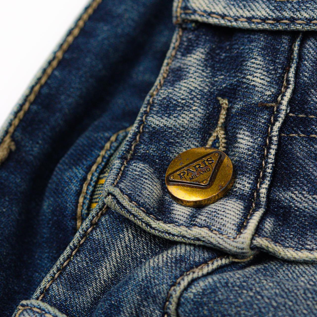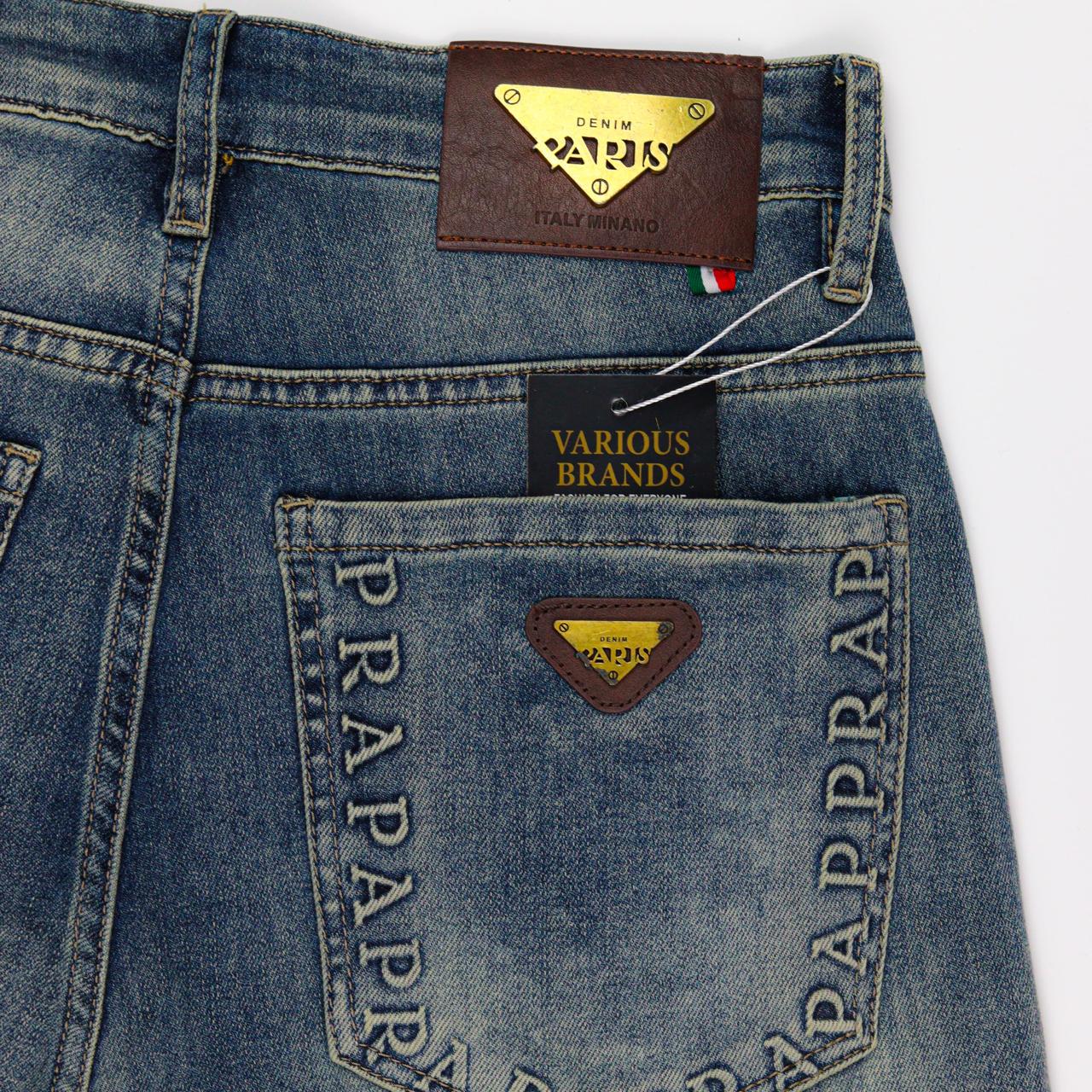 بنطلون Prapard مستورد بالكامل من أعلى الخامات الأصلية، بخامة جينز راقية باللون الأزرق.