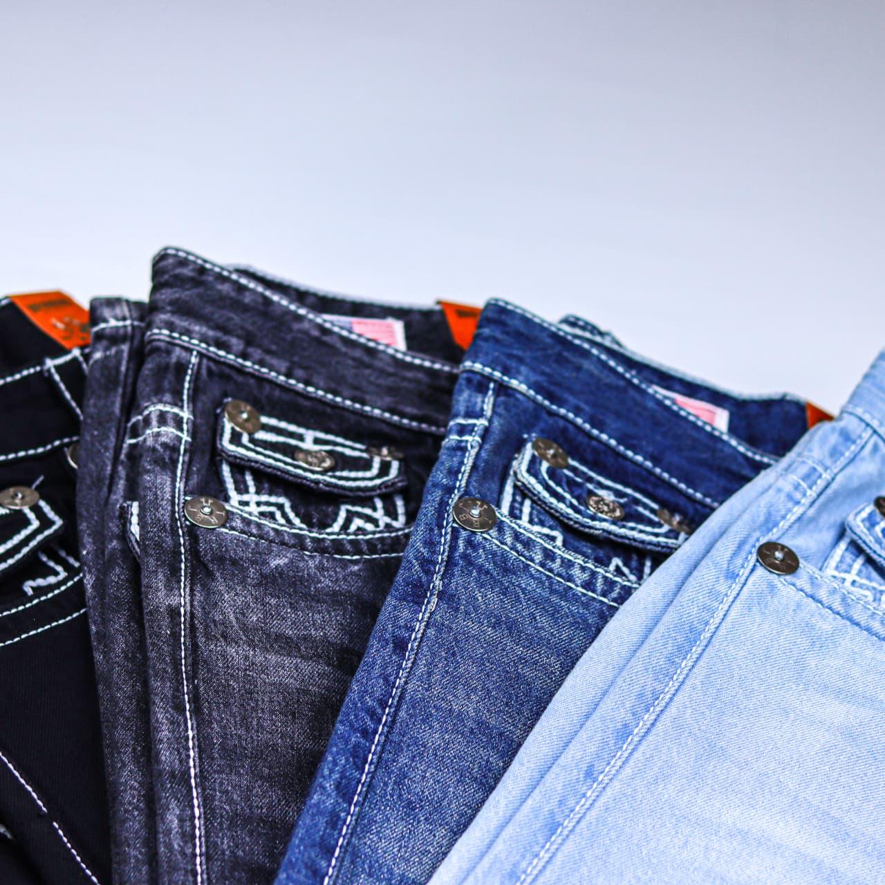 بنطلون True Religion مستورد بجميع الأختام، خامة جينز أصلية متوفر بألوان (أزرق، أسود، أسود مُحَجّر، ثلجي).