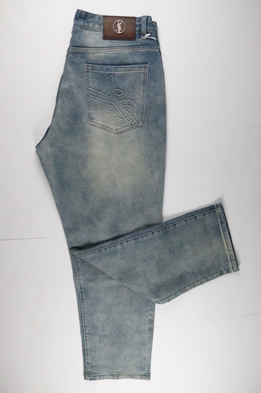 بنطلون YSL جينز مستورد بالكامل بخامة فاخرة عالية الجودة باللون الأزرق.