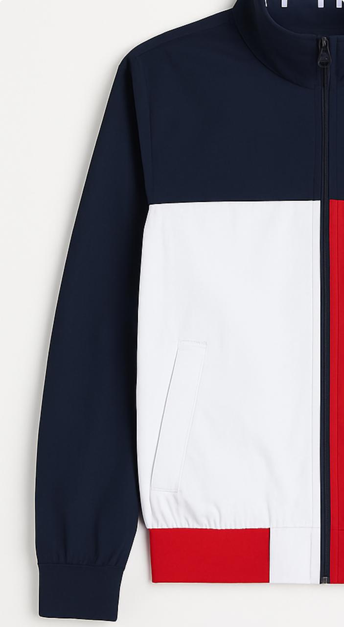 جاكيت Tommy Hilfiger مستورد بالكامل، تصميم أنيق بخامة Waterproof ضد المياه والرياح، بخياطة دقيقة ولمسة فخمة من براند تومي الكلاسيكي. ألوانه المميزة الأحمر والأبيض والكحلي بتديه شكل جذاب مناسب للخروج اليومي والأجواء الباردة. الخامة مريحة جدًا وبتحافظ على شكلها مع اللبس، وسوسته أمامية كاملة وجيوب جانبية بسحّابات.