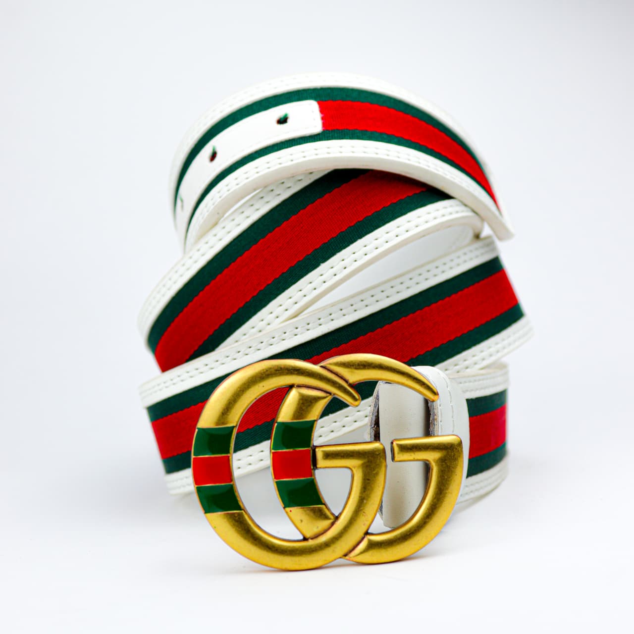 حزام Gucci أبيض بخطوط