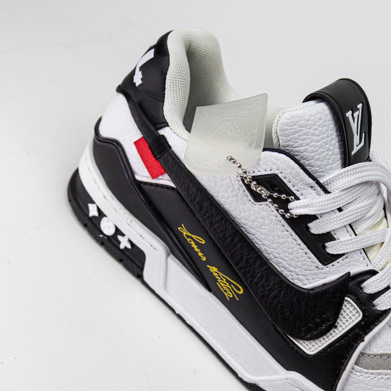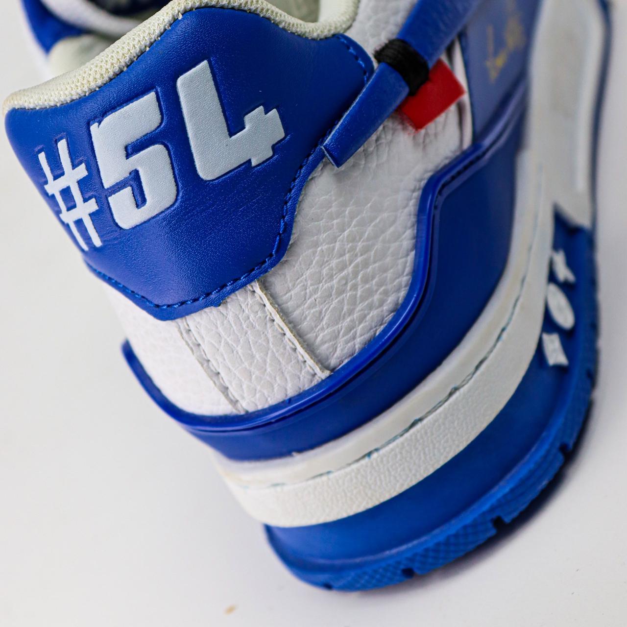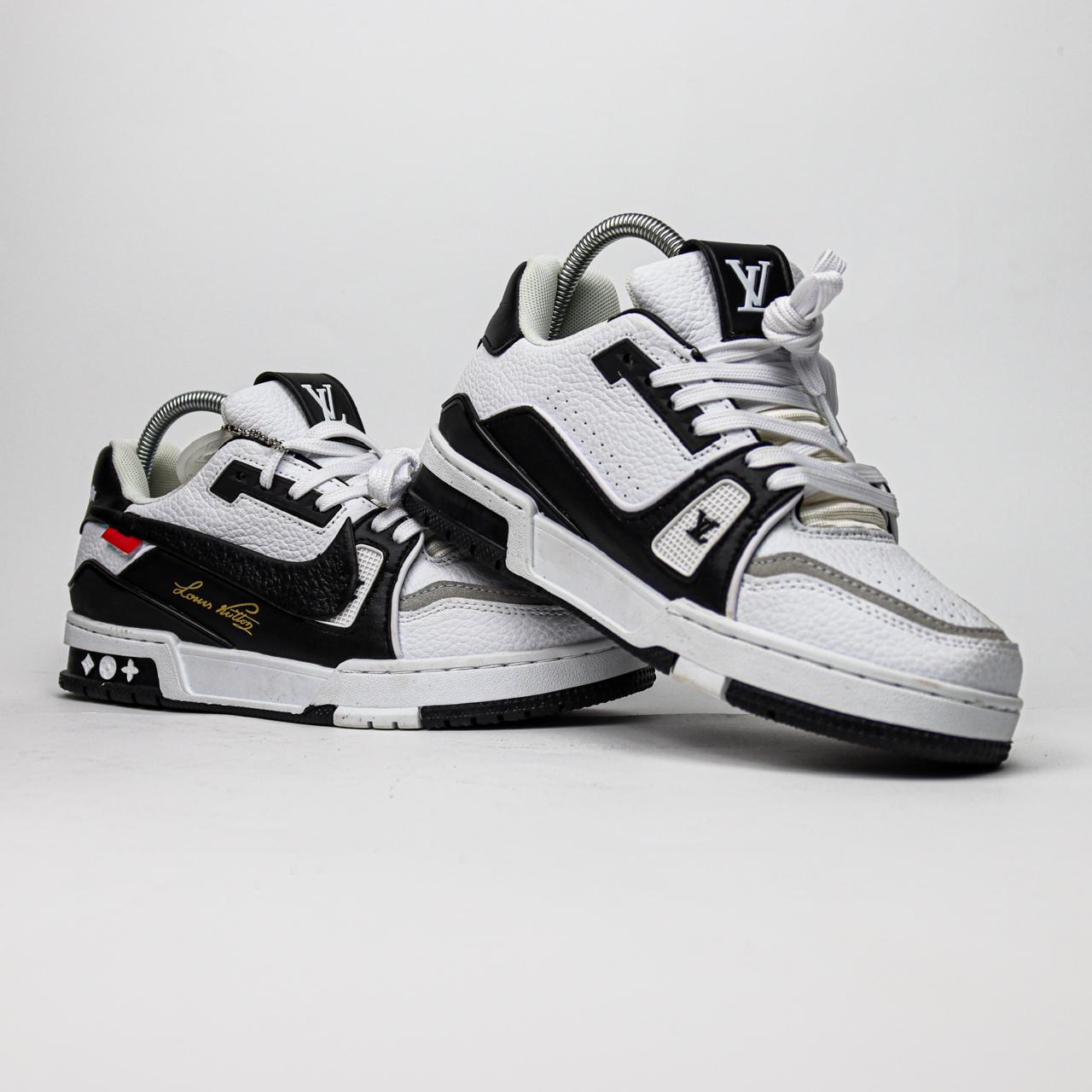 كوتشي Louis Vuitton Premium بجودة مستوردة، خامة جلد محترمة وثبات عالي، متوفر باللون الأبيض × الأسود وبنسخة الأزرق × الأبيض، شكل فخم ومريح جداً للاستخدام اليومي.