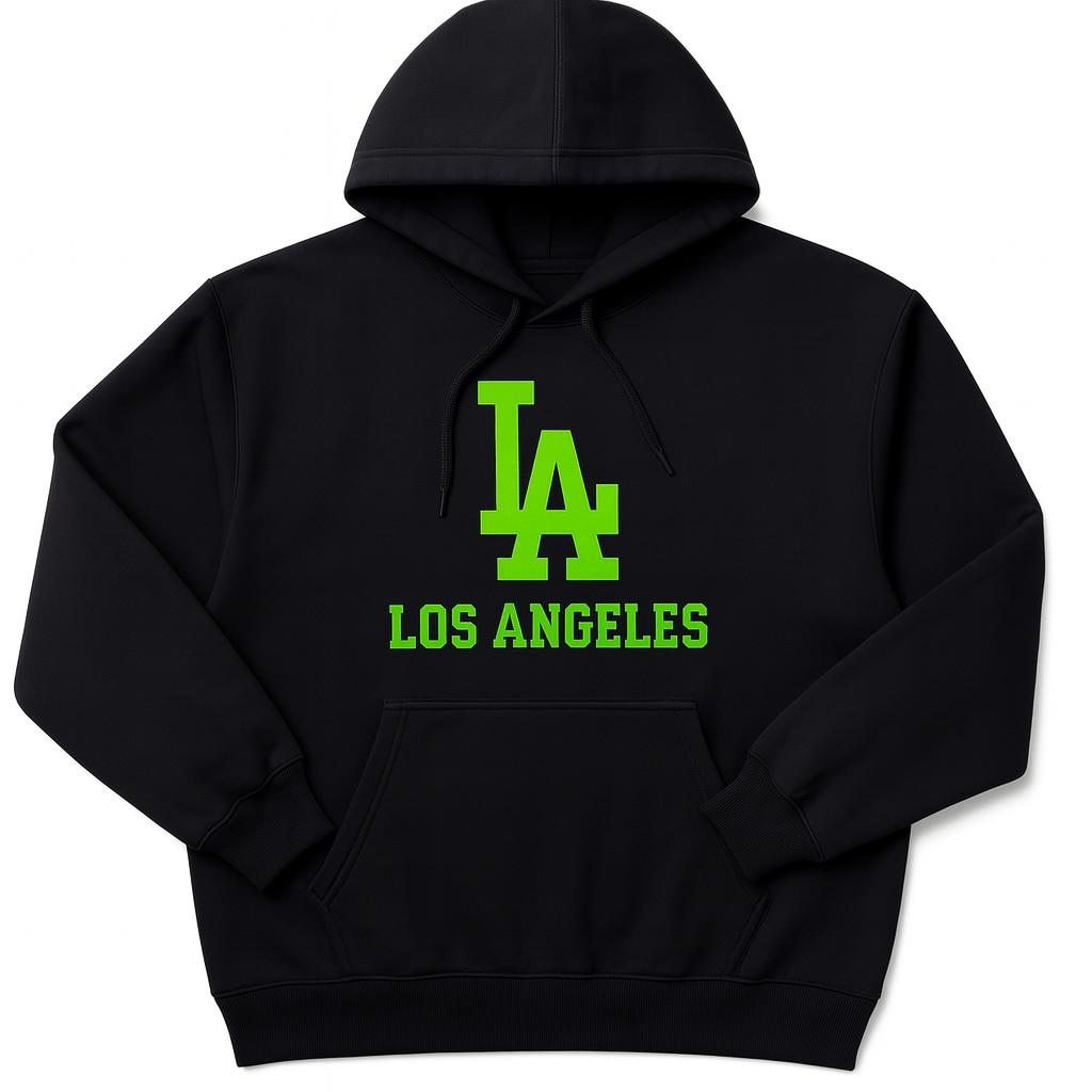 هودي حريمي خامة قطن نعمة ومريحة، تصميم لوس أنجلوس بطباعة واضحة بالأخضر الفاتح يدي شكل شبابي وستايلش. المقاس One Size مناسب لمعظم القوام بقصة واسعة ومريحة جداً. مناسب للخروج اليومي والجامعة والشتا.