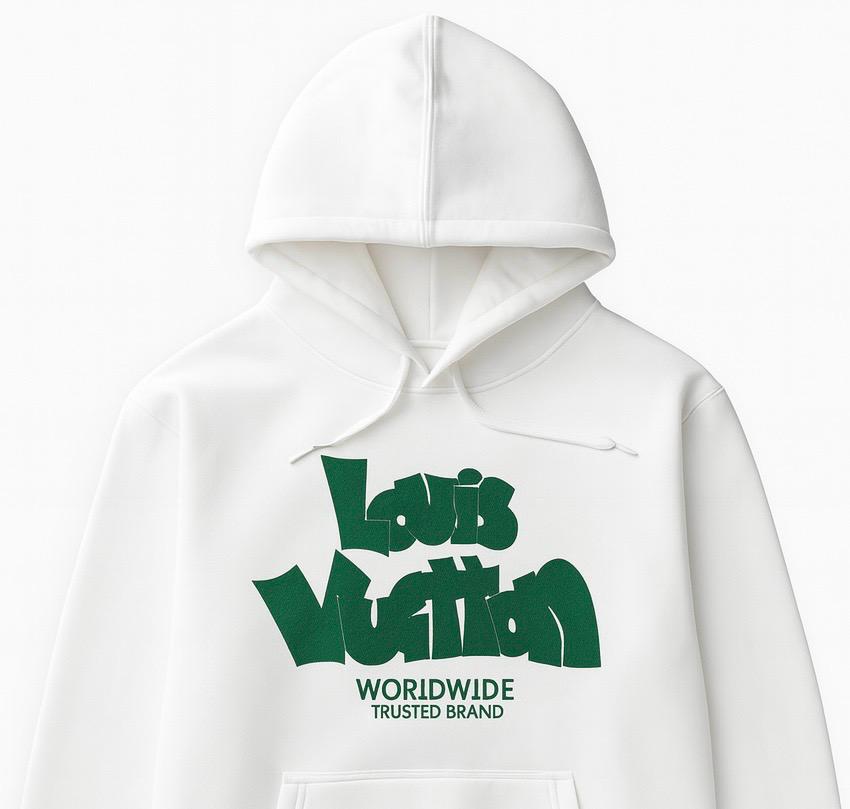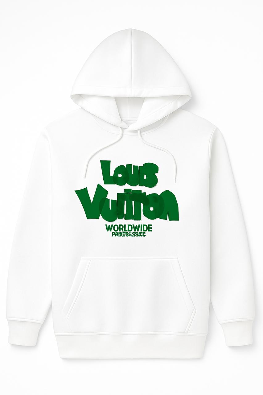 هودي حريمي خامة قطن ناعمة وجودة ممتازة، تصميم LV بطباعة بارزة باللون الأخضر بشكل عصري. المقاس One Size يناسب أغلب الأجسام بقصة مريحة وواسعة. مناسب للجامعة والخروج اليومي والشتا. ثبات عالي على الغسيل ولون ثابت.