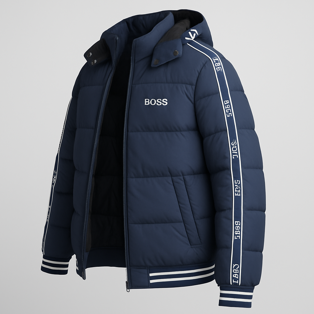 الشحن متاح لجميع الجمهوريةجاكت Boss دبل فيس مستورد بالكامل بخامة فخمة، تصميم عملي وأنيق بوجهين مختلفين باللونين الأزرق والأسود.