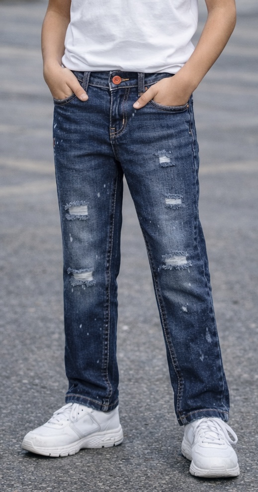 الشحن متاح لجميع الجمهوريةبنطلون Zara Drip أطفالي جينز أزرق مستورد بالكامل، تصميم شبابي بتقطيعات مميزة، من سن 3 إلى 14 سنة،